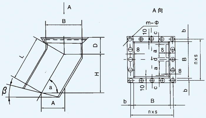 3、450x450落煤管襯板為一個(gè)α和β值在0-20°之間選用;
