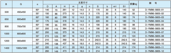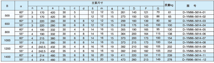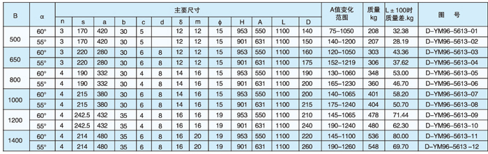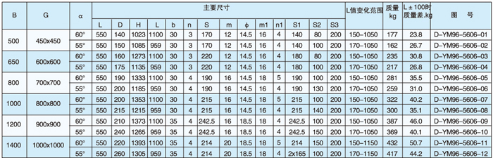 說明:1、表中尺寸和質(zhì)量系按L=550毫米、β=18°編制;2、圖中已包括上部聯(lián)接用緊固件;3、管體采用耐磨材料整體鑄造。