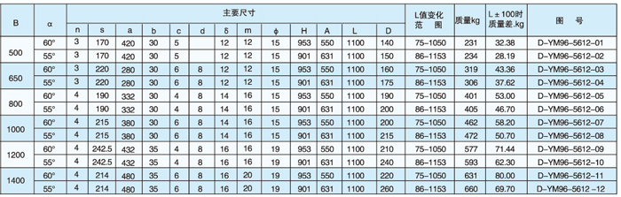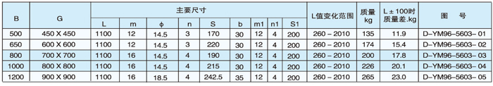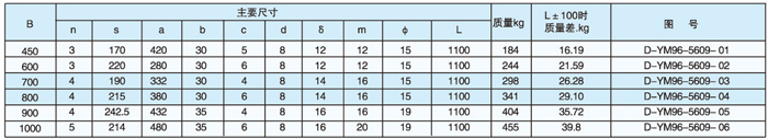 說明:1、表中質(zhì)量均為L=1100mm計(jì)算;