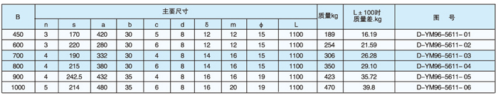 說明:1表中質(zhì)量均為L=1100mm計(jì)算;