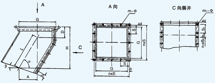 4、為達(dá)到防腐目的,落煤管采用防腐材料整體鑄造或易磨損部位采用防磨材料整體鑄造,其它部位用普鋼組合制造。
