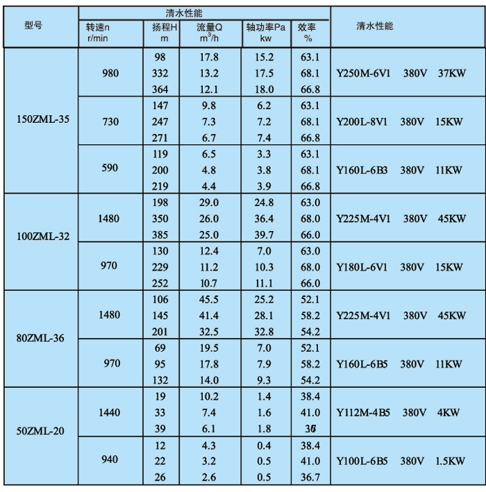 ZML立式渣漿泵主要技術(shù)參數(shù)